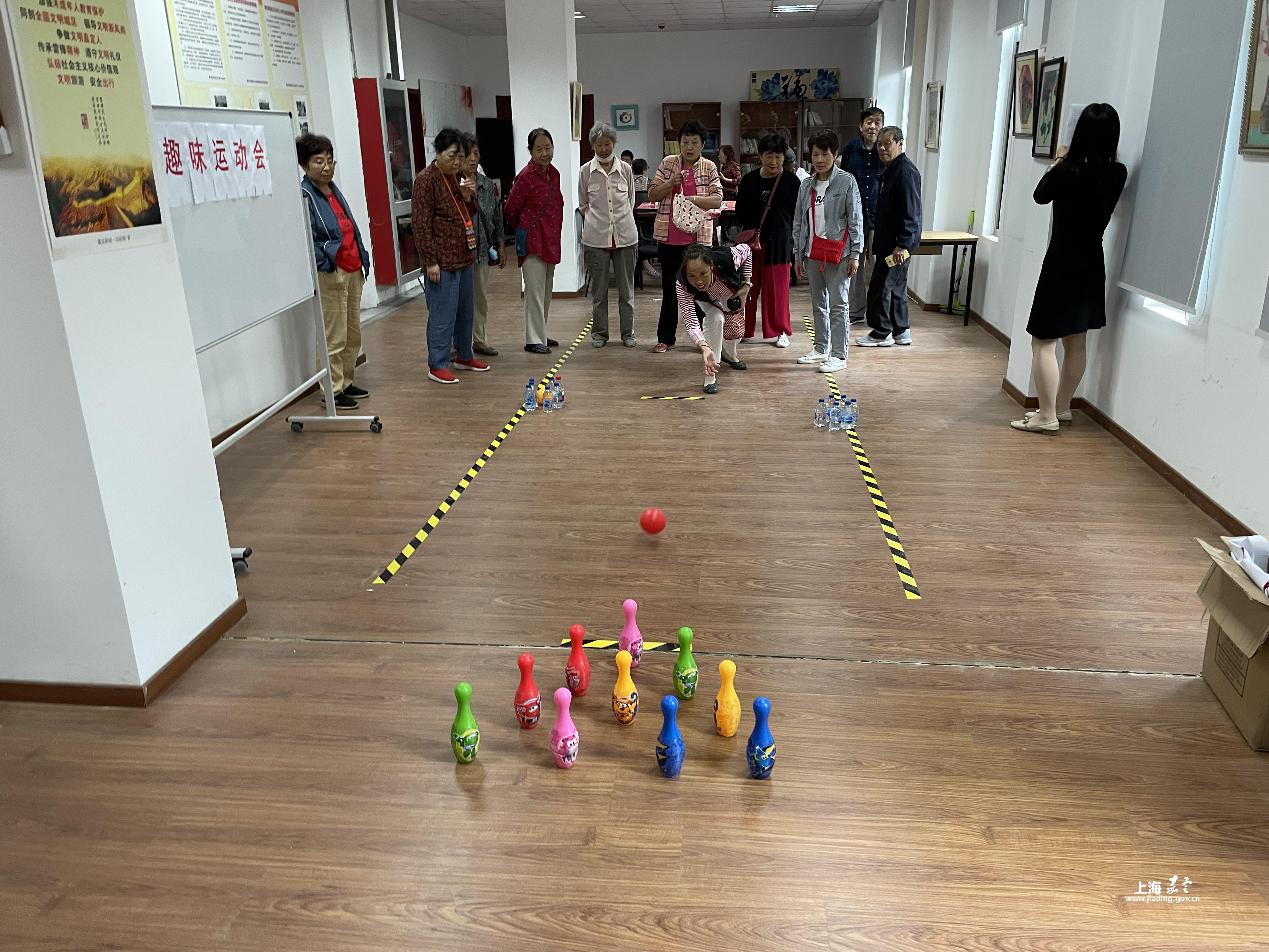 10月21日在居委二楼的活动室,居民们一起动手布置好运动场地和道具,大家开展的都是精彩有趣、贴近生活、方便参与的趣味健身活动。随处可见老年群众认真投入运动的身影,有的居民热衷参与打保龄球,一球接一球精彩的表现引起围观群众阵阵叫好声;有的在玩比手画脚的游戏,居民们出彩的动作表演,形象地演绎出词汇,诙谐幽默的秧歌也演绎出中老年人活动健身的无穷乐趣。参加活动的居民在愉快的健身运动中,身心得到了充分的放松,彼此间加强了沟通,加深了感情,增进了友谊,可谓是一举多得,让人们在健身中体验快乐,获得健康。
